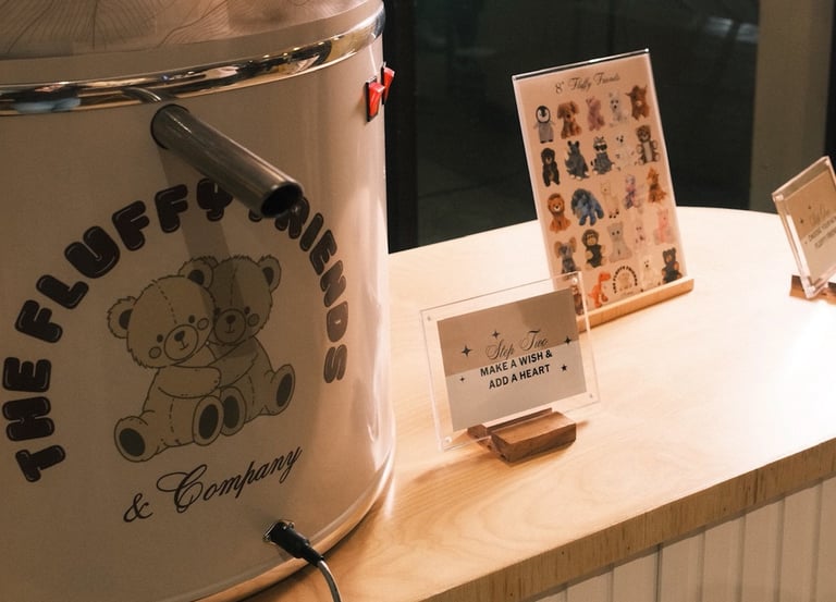 At Fluffy Friends, we bring the stuff-a-plush experience to you. Guests create their own Fluffy Friend from a curated start to finish, turning a few simple steps into a core memory.